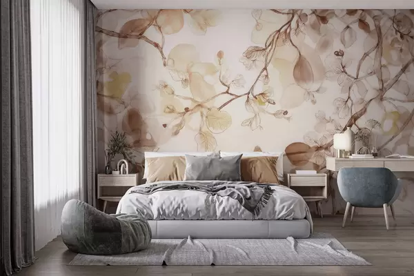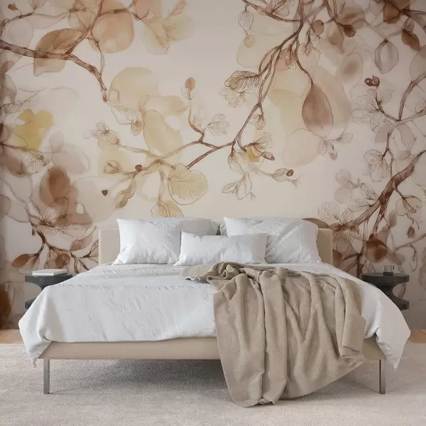 Fototapet Ramuri aerisite, suspendate, în nuanțe de bej, în stil acuarelă Nr. w09795
