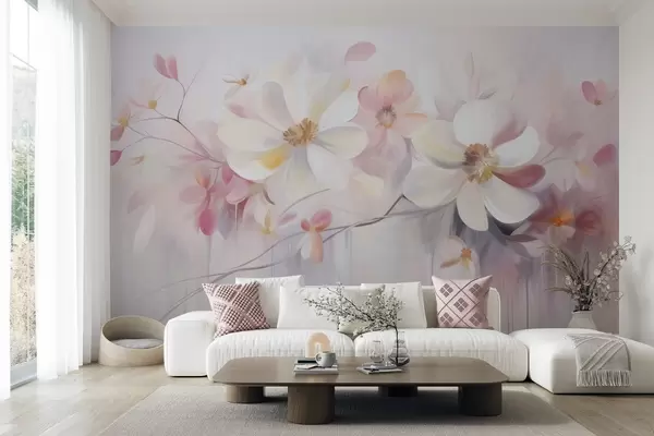 Fototapet Flori albe și roz cu petale delicate, texturate, pe un fundal abstract și delicat Nr. w09811
