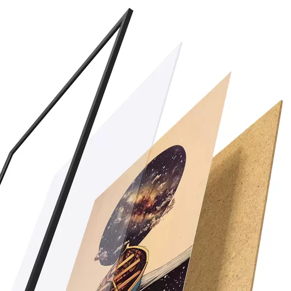 Afișul constă dintr-o ramă, plexiglas, imagine imprimată și suport din PAL. Posterul poate fi agățat imediat pe perete datorită suporturilor de pe spate.