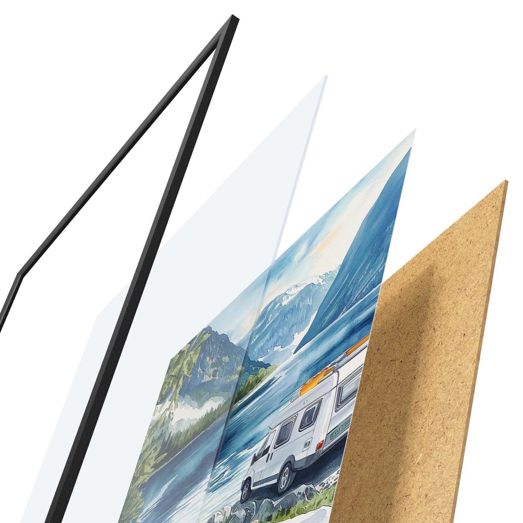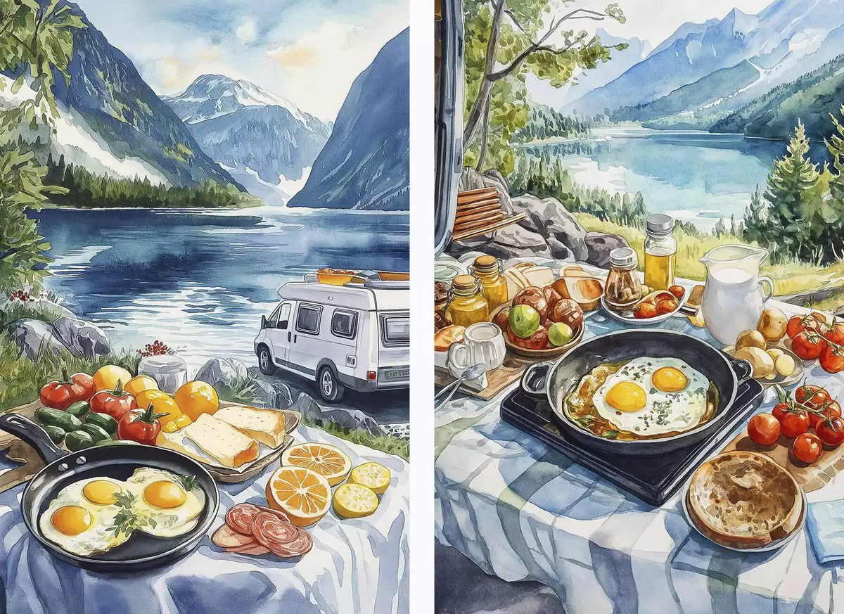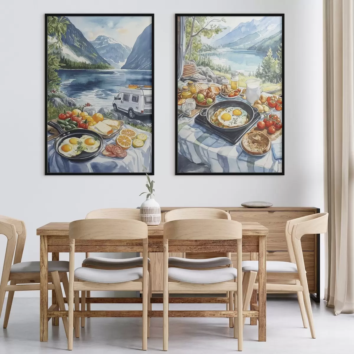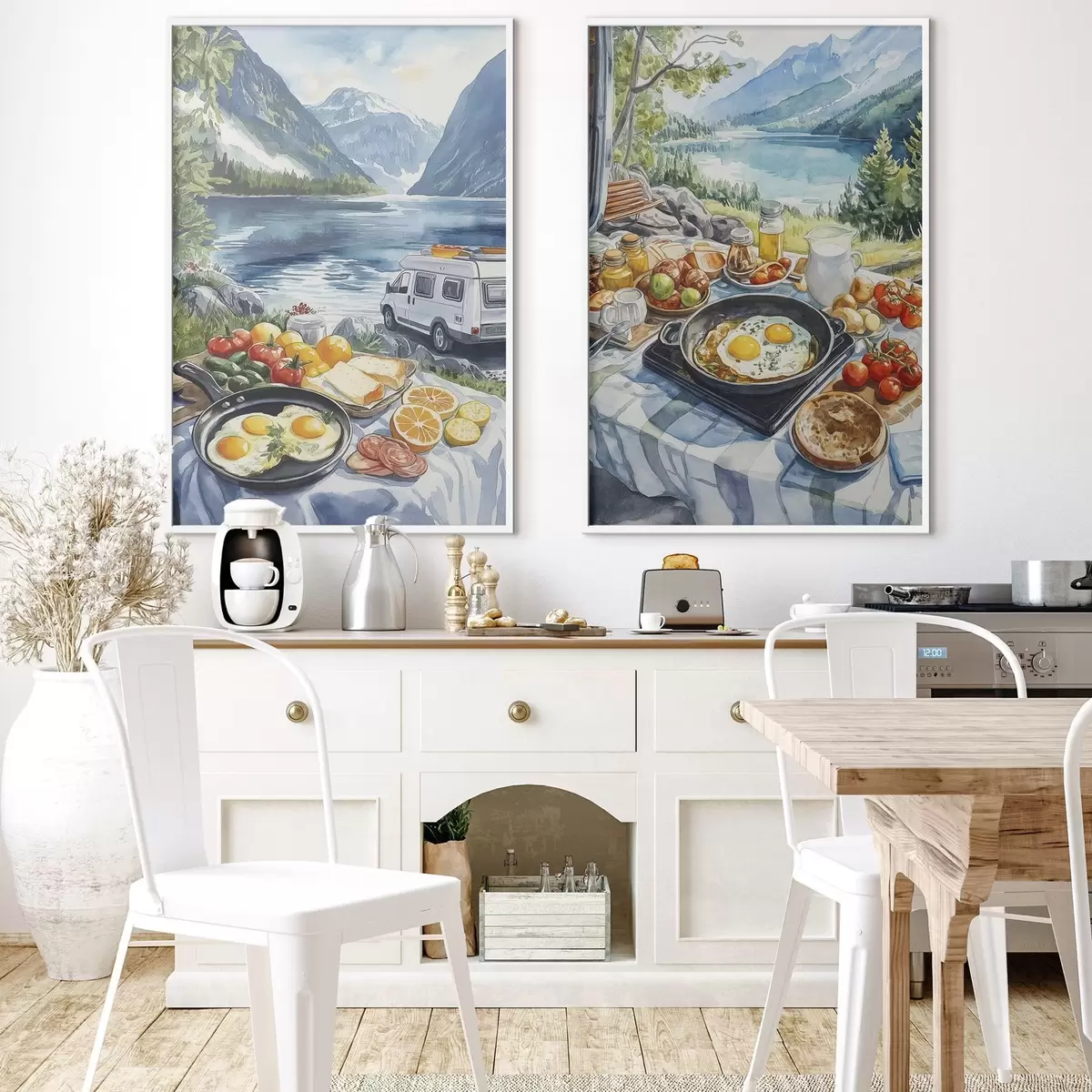 Poster Mic dejun în natură, călătorie, viață în aer liber, stil acuarelă, Norvegia d00404