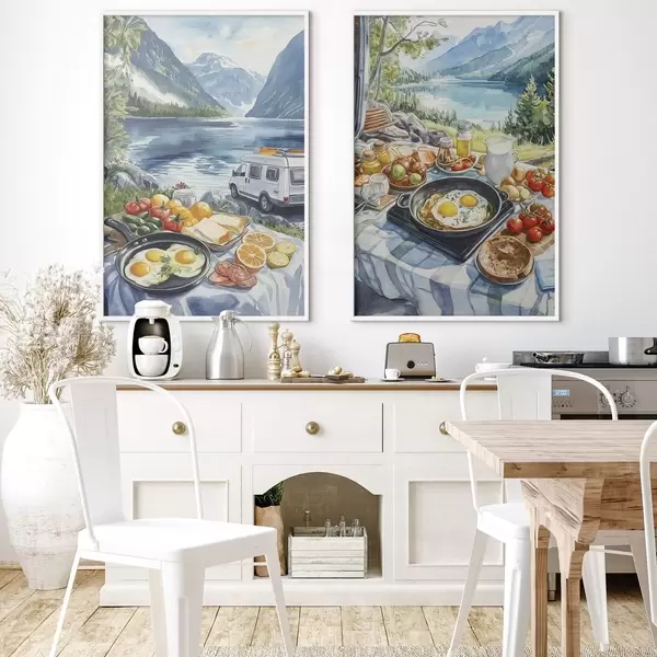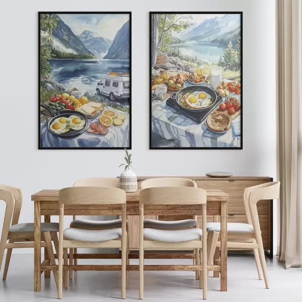 Poster Mic dejun în natură, călătorie, viață în aer liber, stil acuarelă, Norvegia Nr d00404