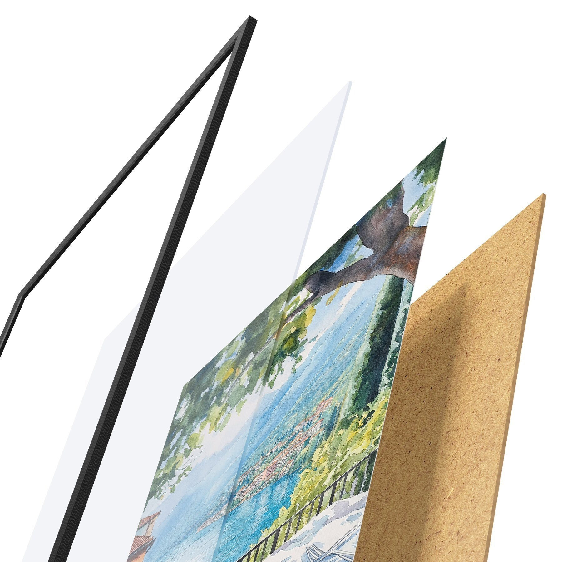 Poster Lacul Como, brunch în Italia, stil acuarelă, pizza margarita, natura verii Nr d00406