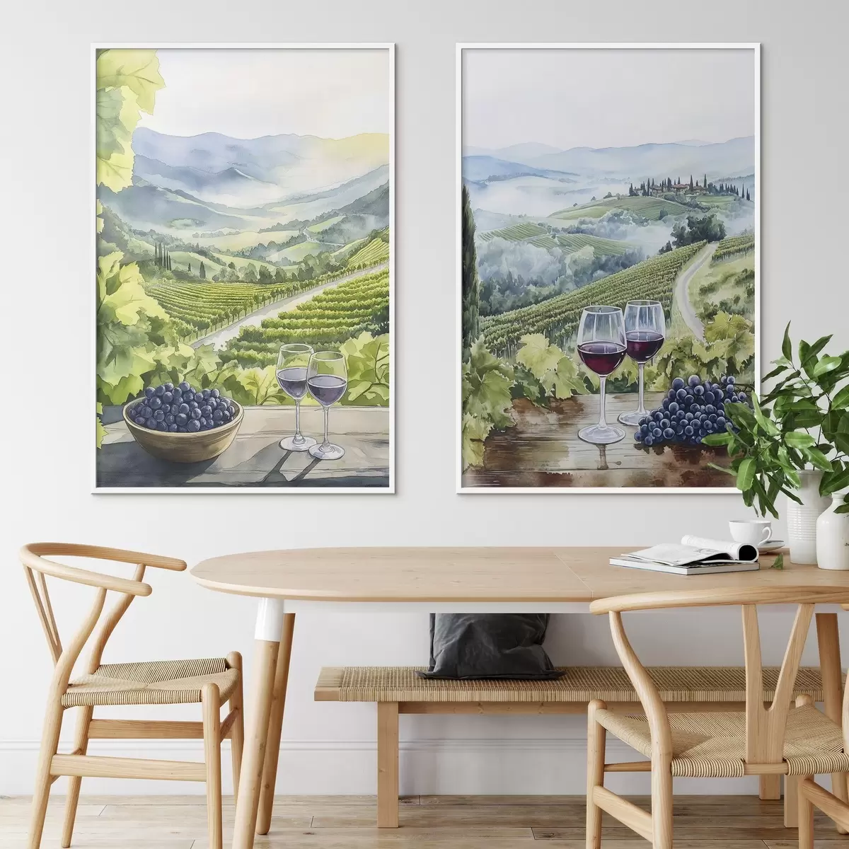 Poster Peisaje frumoase din Toscana, curți de struguri, pahare de vin, stil acuarelă, Italia Nr d00408