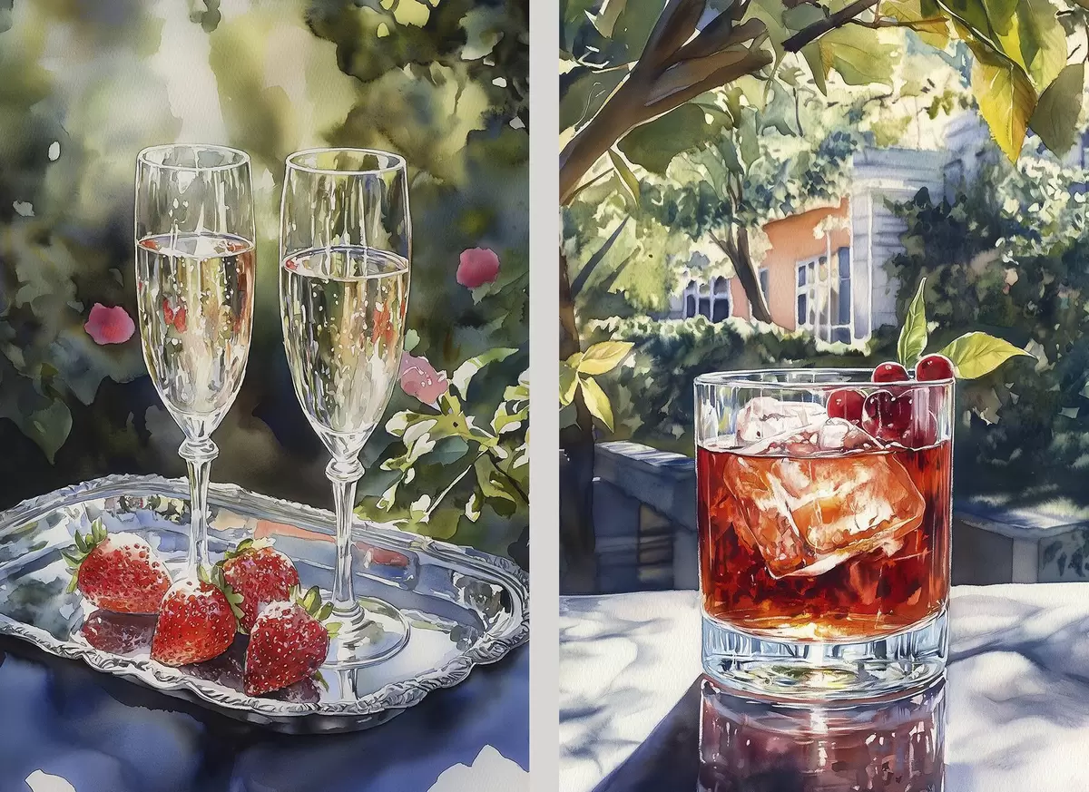 Poster Cocteiluri delicioase cu fructe de pădure, stil acuarelă, estetică, natură de vară d00415
