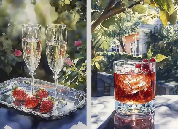 Poster Cocteiluri delicioase cu fructe de pădure, stil acuarelă, estetică, natură de vară d00415
