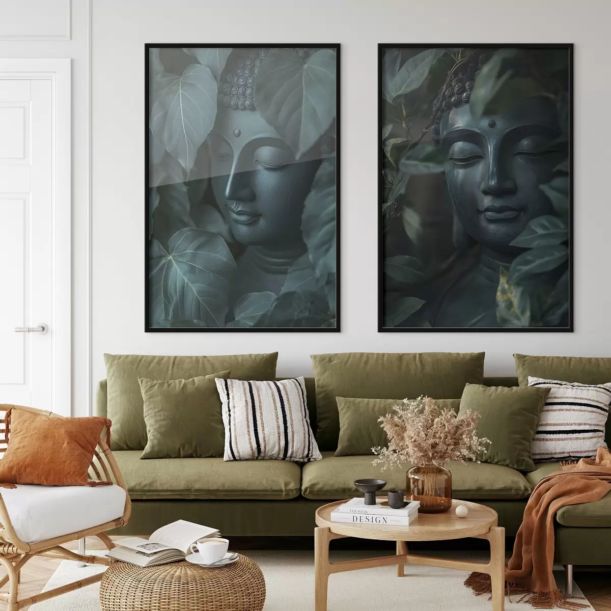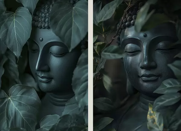 Poster Buddha meditativ în frunze verzi, budism, tropical, realism d00447