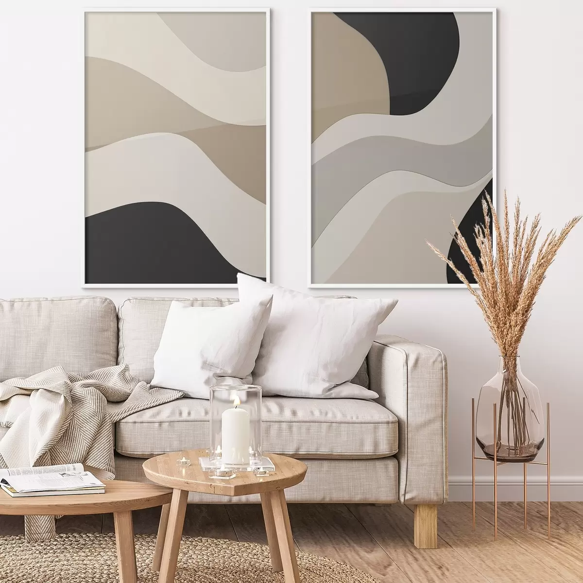 Poster Valuri abstracte în tonuri de bej și negru Nr d00460