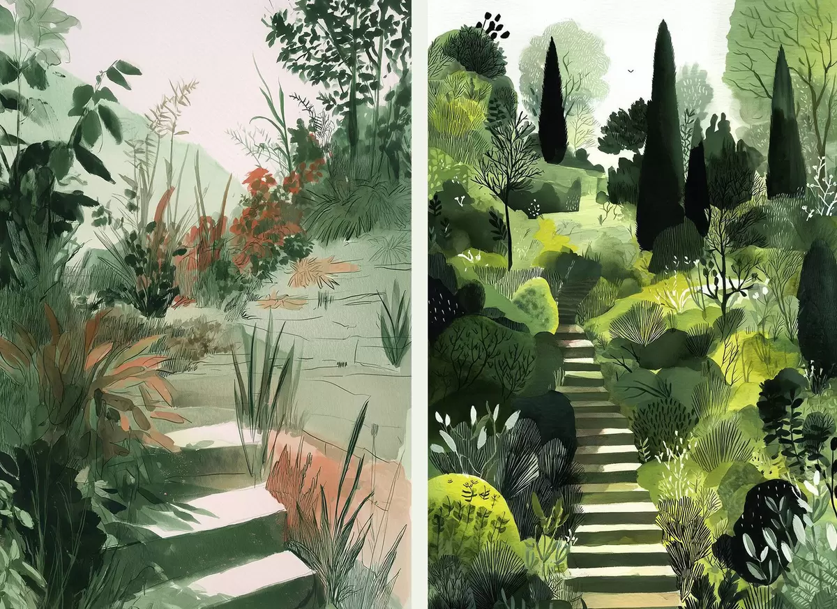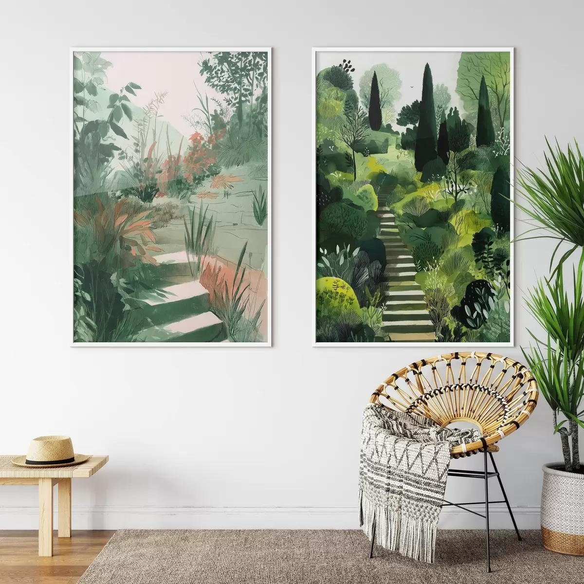 Poster Grădină orientală verde cu tufișuri și copaci Nr d00478