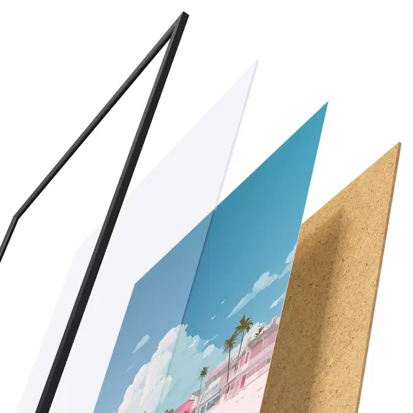 Afișul constă dintr-o ramă, plexiglas, imagine imprimată și suport din PAL. Posterul poate fi agățat imediat pe perete datorită suporturilor de pe spate.
