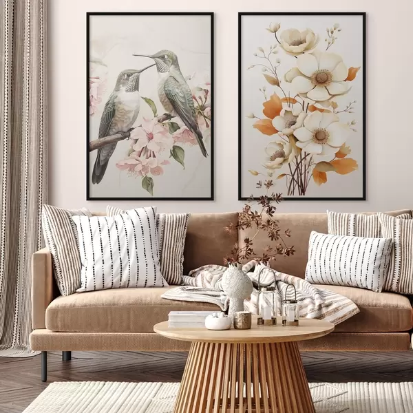 Poster Flori și păsări pe ramuri d00560