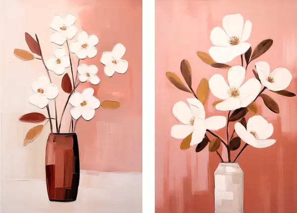 Poster Compoziție cu vaze contrastante și flori albe texturate d00575