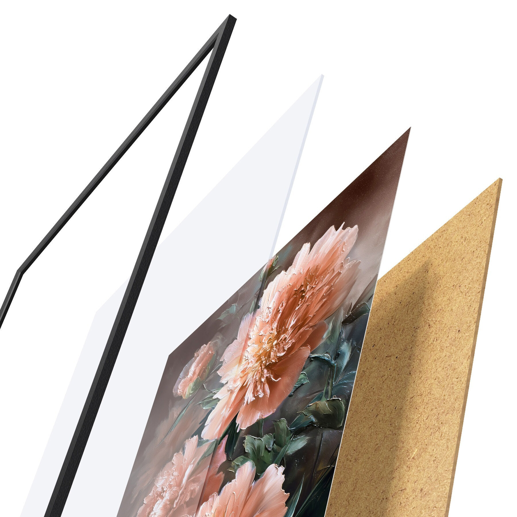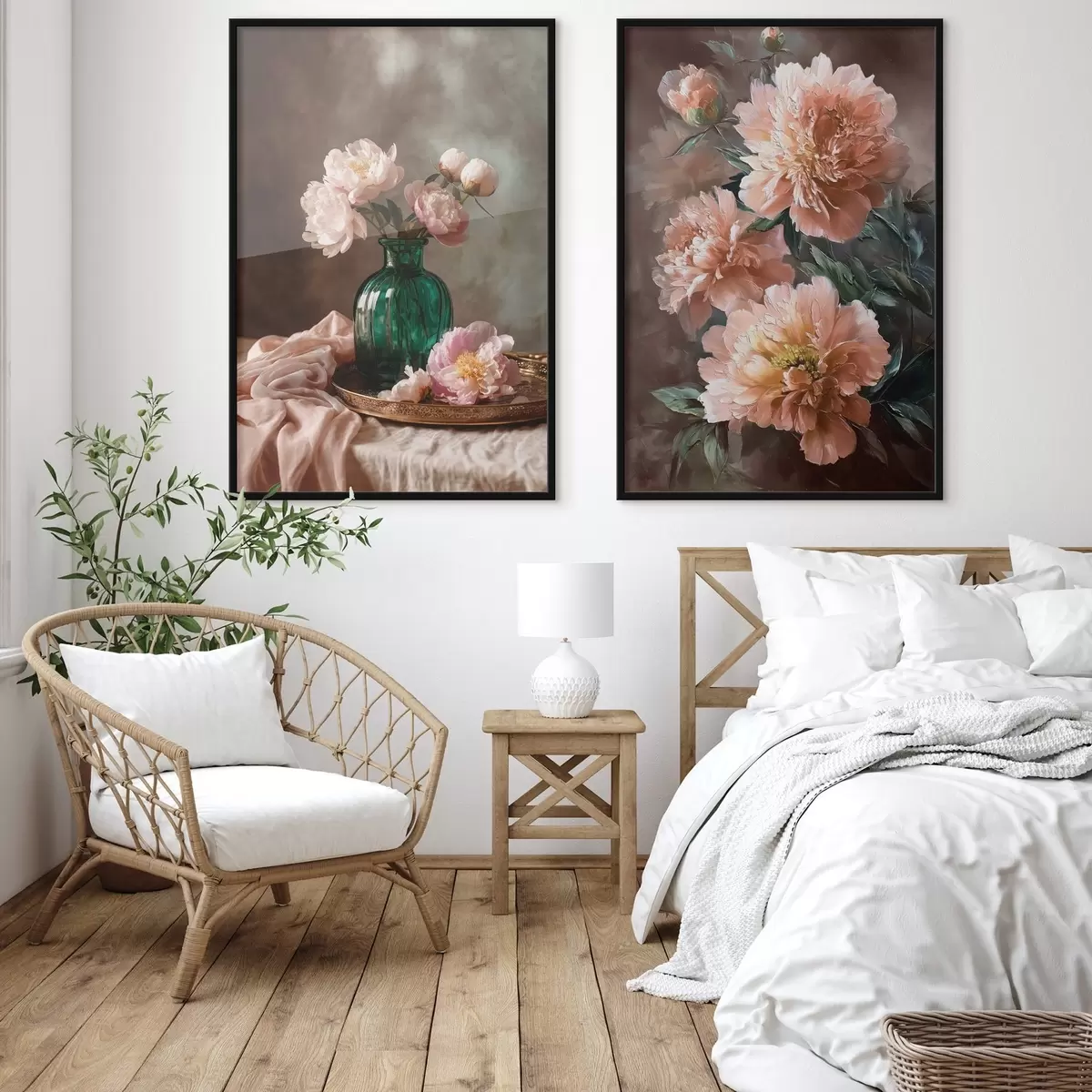 Poster Compoziție împerecheată cu bujori roz într-o vază și pe pânză d00578