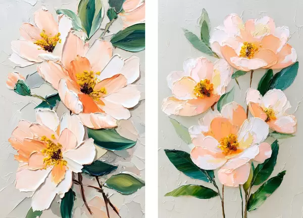 Poster Pictură în stil Impasto care combină un buchet mare și flori individuale Nr d00579