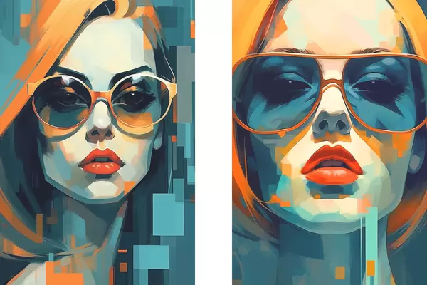 Poster Portrete de femei care poartă ochelari în stilul abstracției digitale d00587