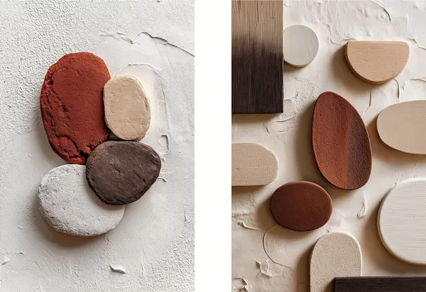 Poster Compoziții abstracte cu forme geometrice volumetrice pe un fundal texturat d00597