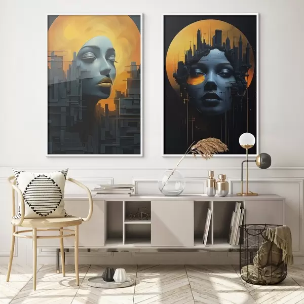 Poster Portret de fată pe un fundal abstract de oraș d00618