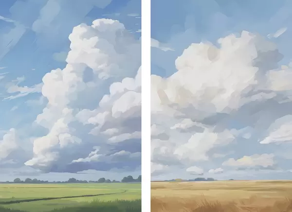 Poster Câmp împotriva cerului cu nori uriași Nr d00624
