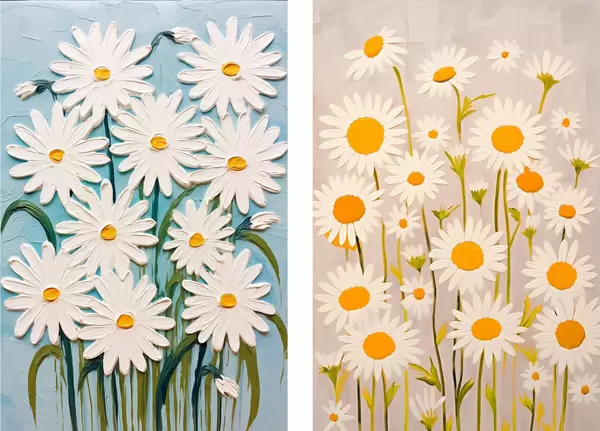 Poster Prospețimea primăverii: diptic cu margarete voluminoase în stil impasto d00633
