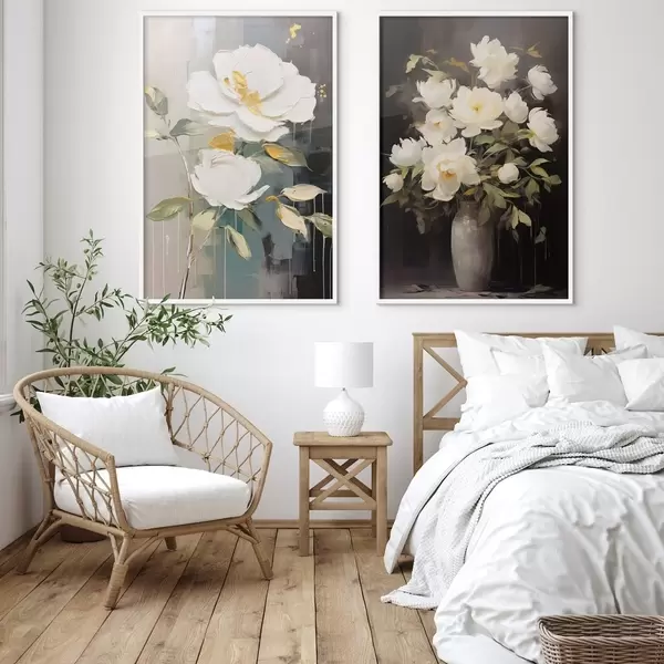 Poster Bujorii albe pe un fundal întunecat: compoziție decorativă Nr d00634