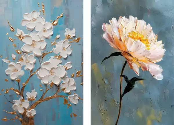 Poster Ramură înflorită și bujor: compoziție în relief Nr d00637