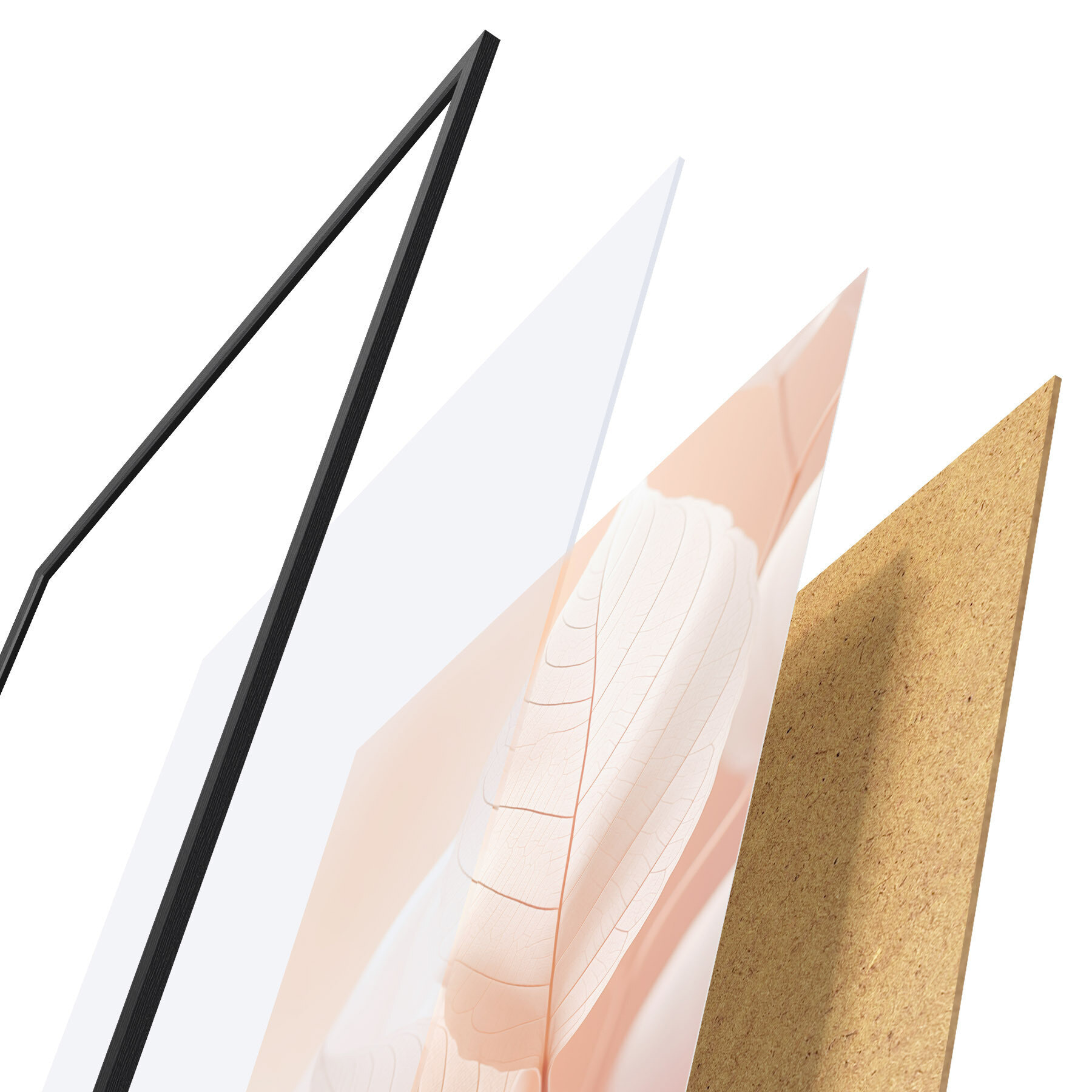 Poster Close-up de frunze translucide cu vene delicate, paleta de culori piersică moale și alb, fundal neclar d00647