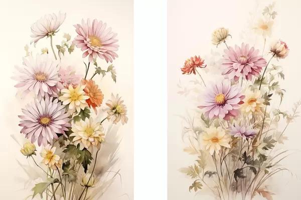 Poster Un buchet de flori colorate, stil acuarelă moale, pe un fundal ușor, ilustrație botanică d00649