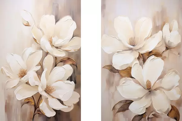 Poster Flori albe de magnolie pe un fundal blând, neclar, cu tonuri de bej și maro, stil pictură Nr d00655