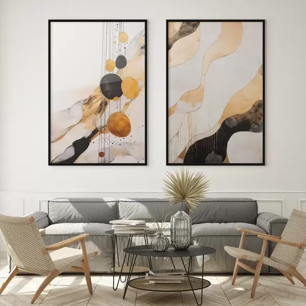 Poster Compoziție abstractă cu cercuri negre și portocalii Nr d00684