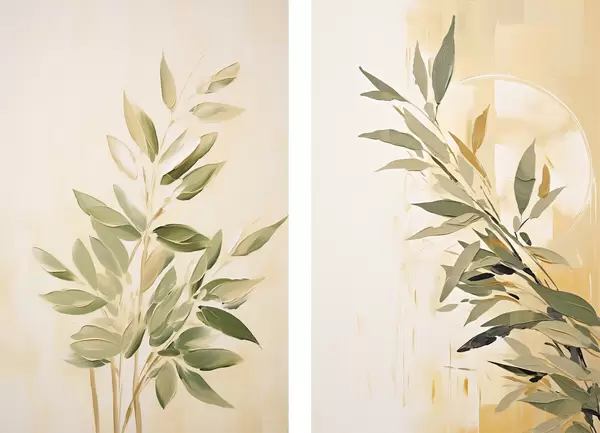 Poster Ramură botanică cu frunze verzi pe un fundal cald Nr d00686