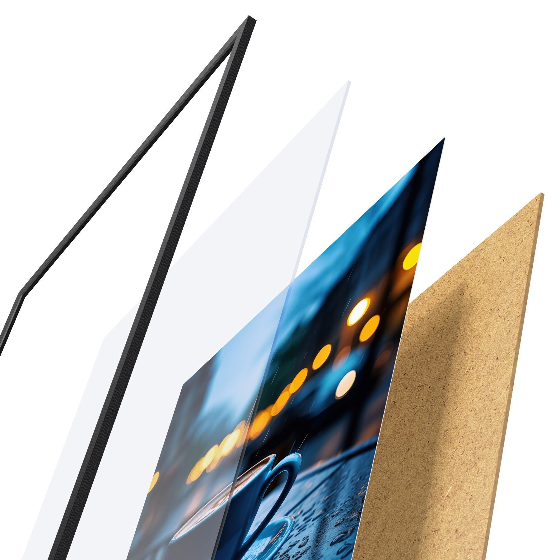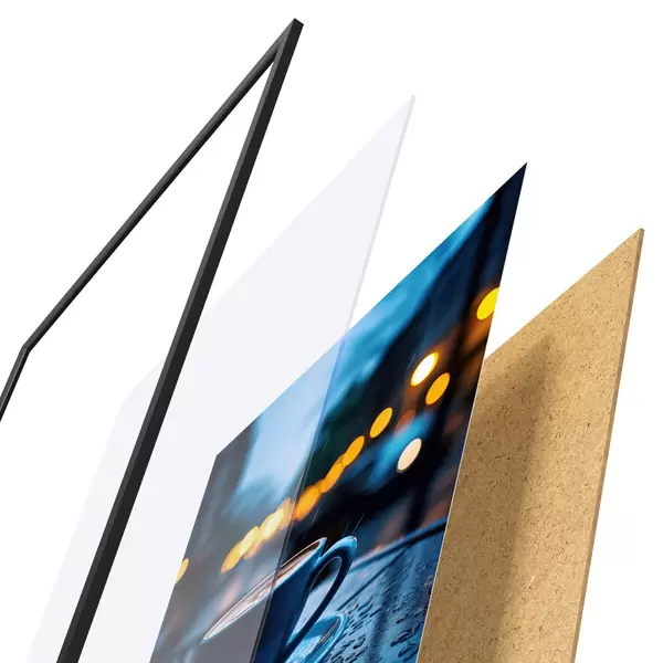 Afișul constă dintr-o ramă, plexiglas, imagine imprimată și suport din PAL. Posterul poate fi agățat imediat pe perete datorită suporturilor de pe spate.