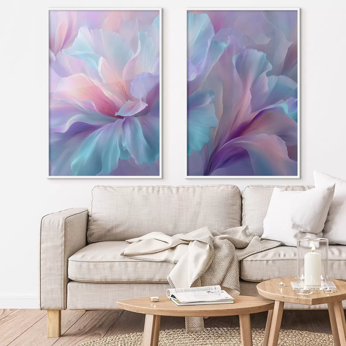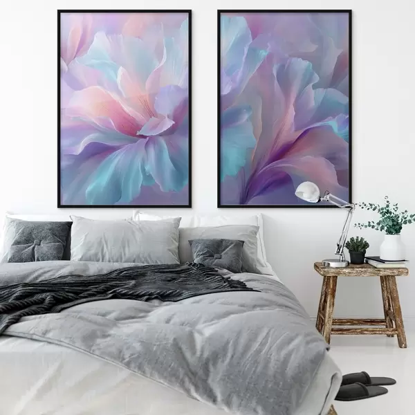Poster o floare delicată, fantastică, cu petale în nuanțe de violet, albastru și roz Nr d00700