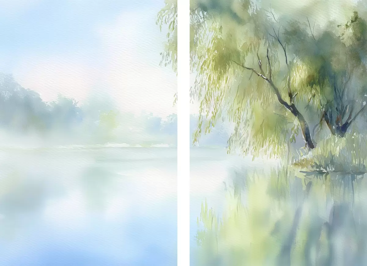 Poster salcie pe malul lacului în stil acuarelă Nr d00702