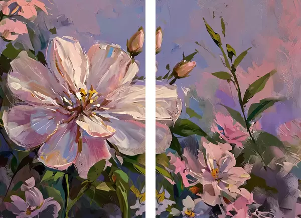 Poster flori roz în stilul picturii în ulei d00706
