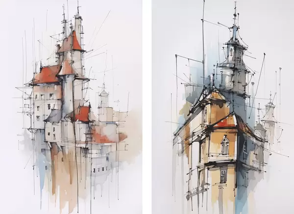Poster Case schiță imitație și acuarelă d00725