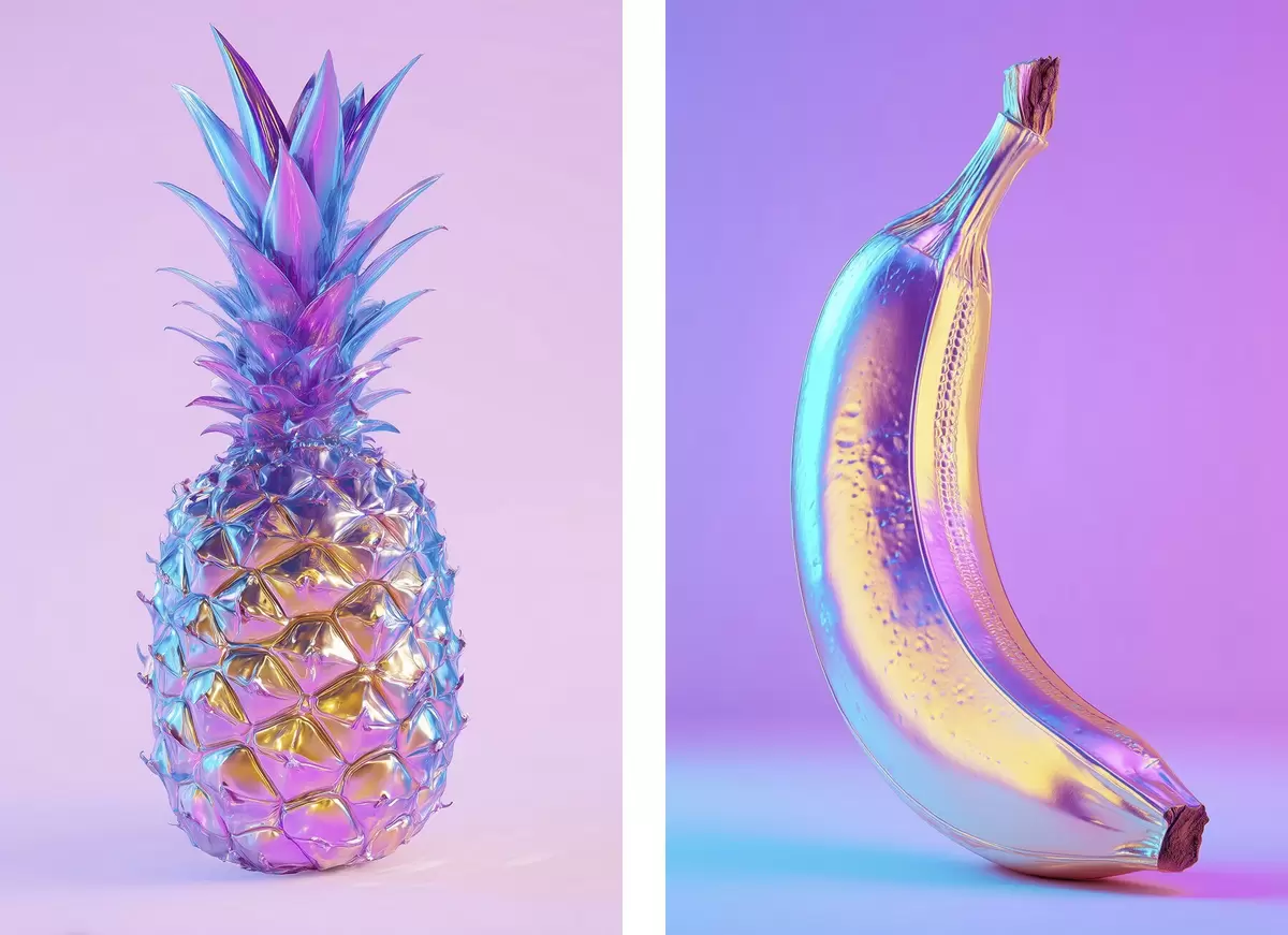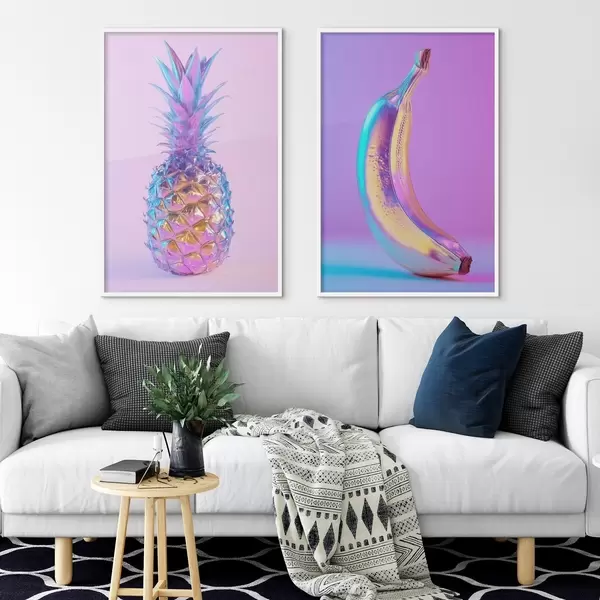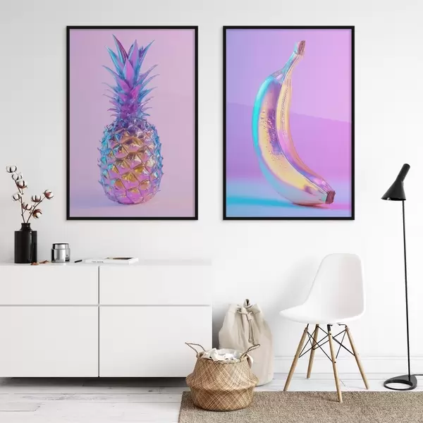 Poster ananas și banană strălucitoare și lucioase în stil pop art Nr d00737