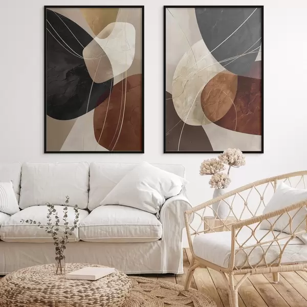 Poster Ovale geometrice într-o paletă caldă cu linii galbene Nr d00763