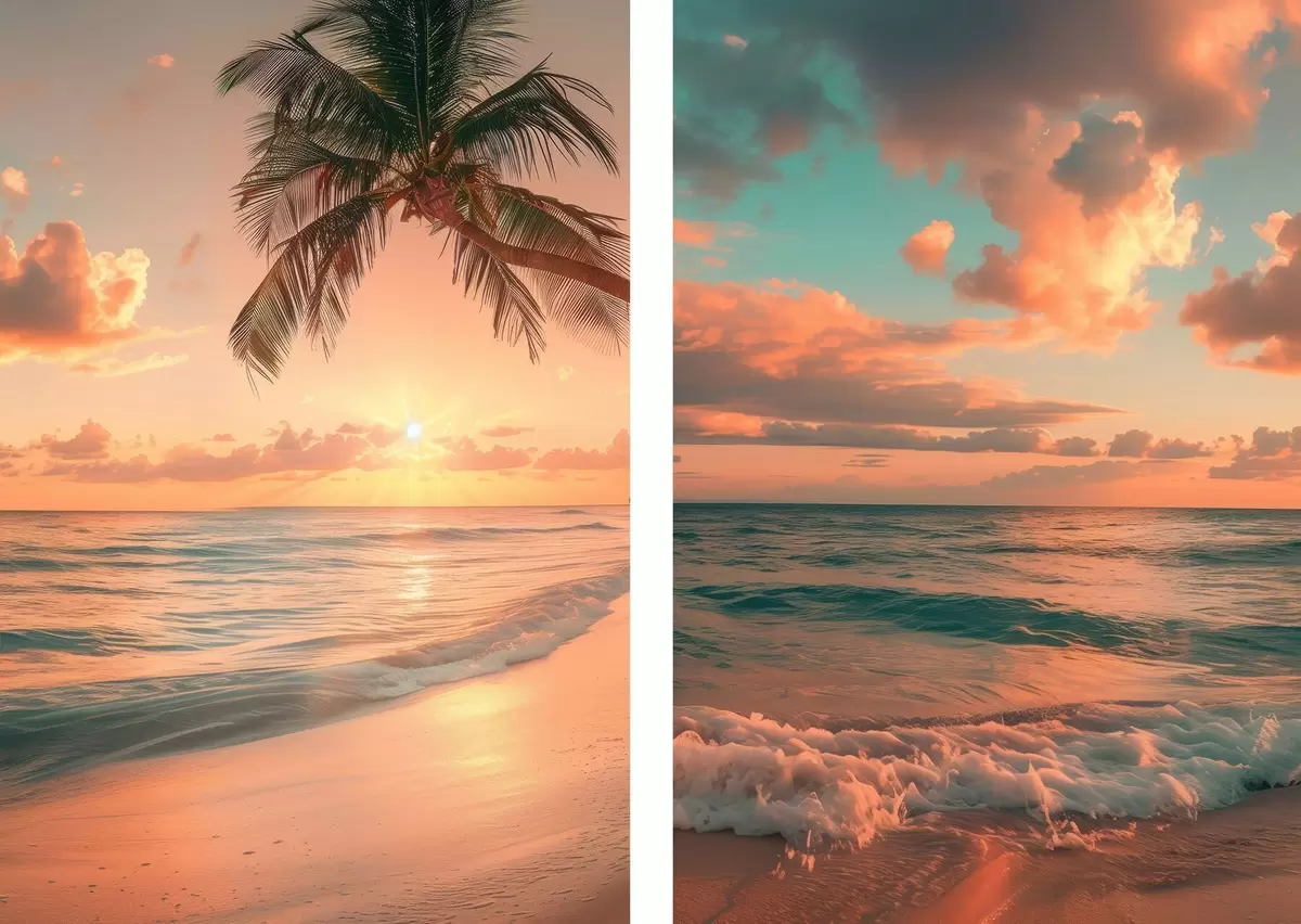Poster Apus de soare pe malul mării, cu vedere la valuri Nr d00787