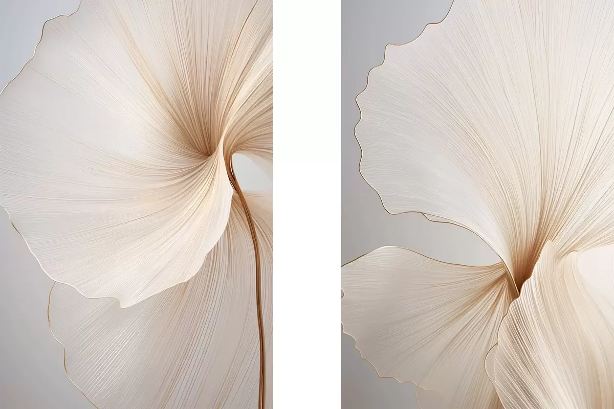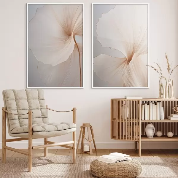 Poster Flori abstracte cu petale subțiri și delicate, în nuanțe de alb și bej Nr d00817