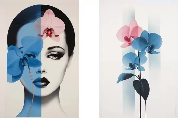 Poster Portret abstract al unei femei cu orhidee Nr d00818