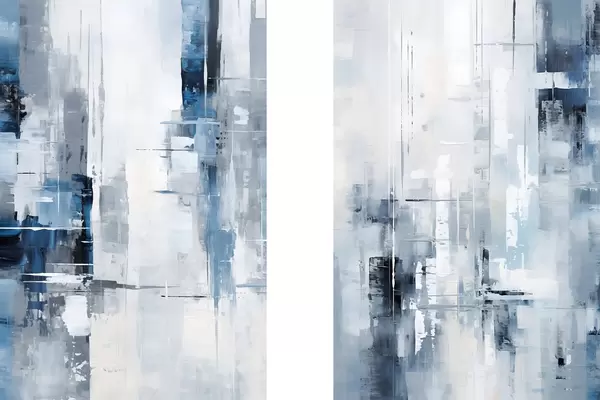 Poster Imitare de pictură abstractă cu culori albastru, gri și alb, linii verticale și forme geometrice d00819