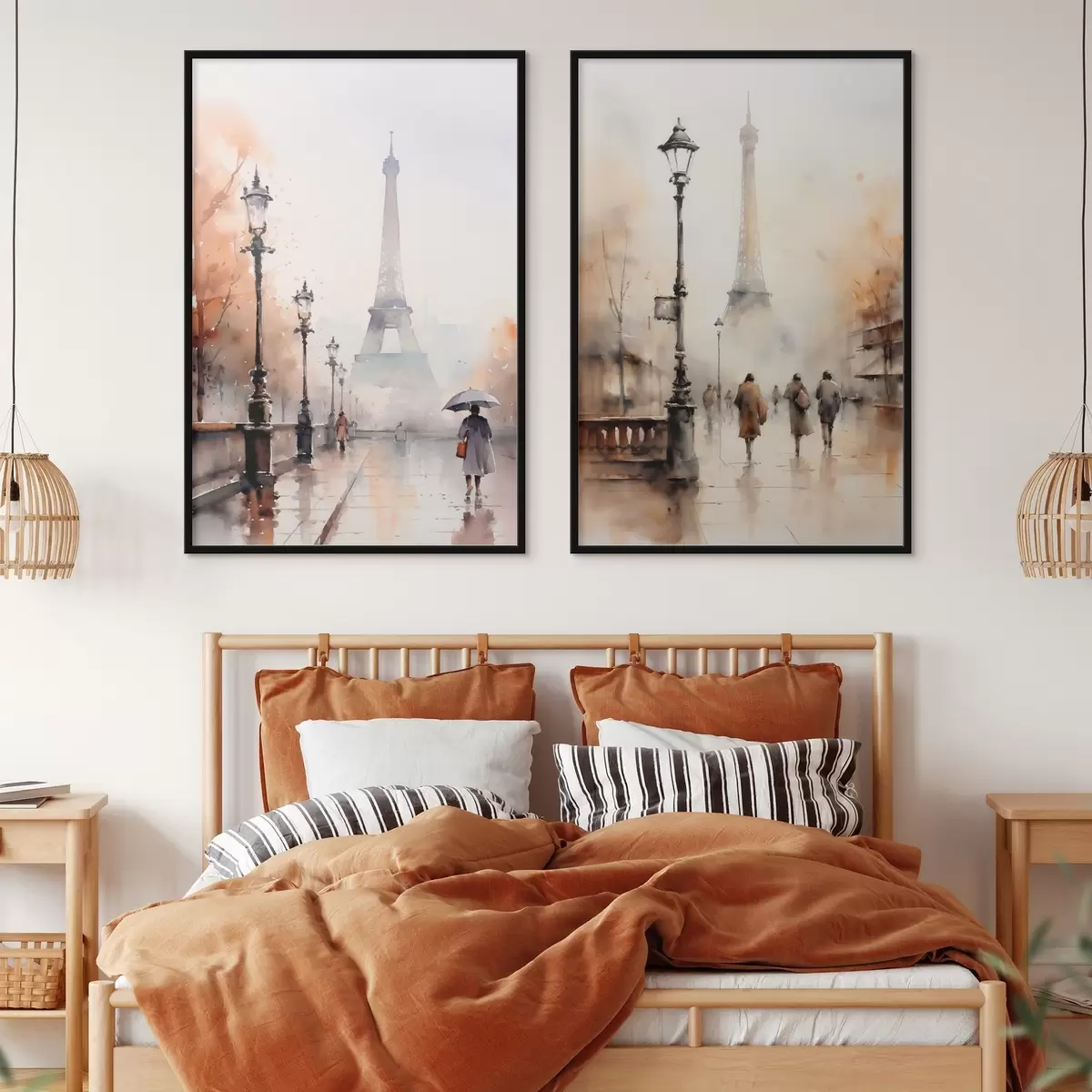 Poster O zi ploioasă de toamnă în Paris, cu Turnul Eiffel în fundal și felinare vintage d00821