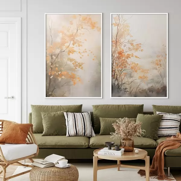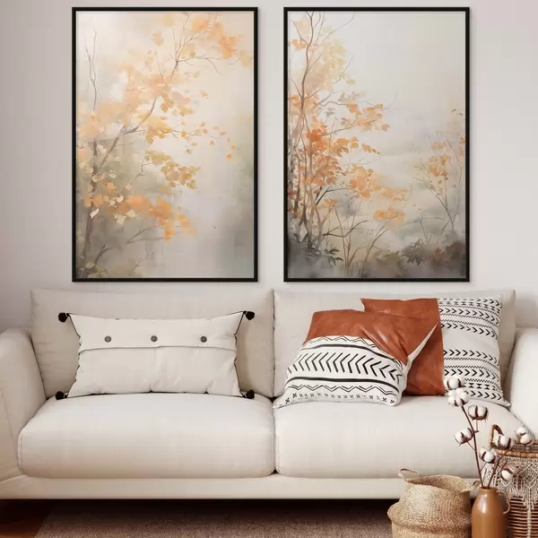 Poster Copaci de toamnă cu frunze și ramuri portocalii, stil acuarelă delicată, tușe delicate Nr d00826