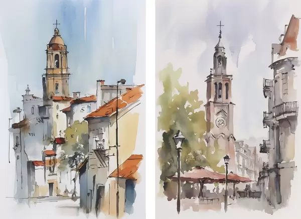 Poster Acuarelă imitație peisaj urban Nr d00832