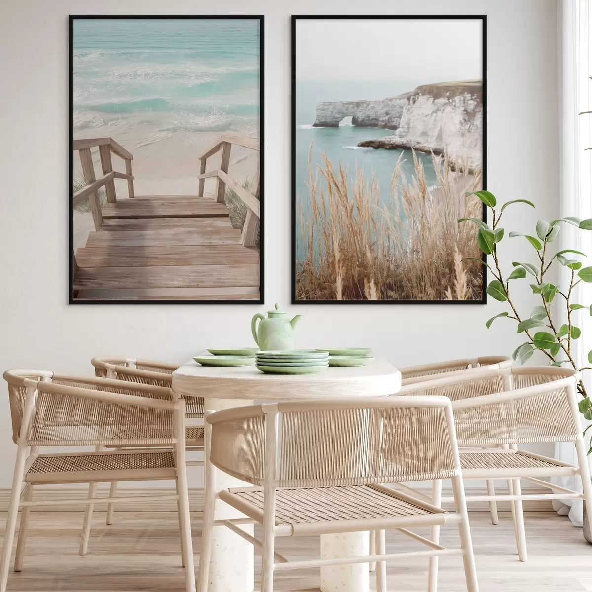 Poster Stânci de coastă și iarbă uscată lângă marea turcoaz Nr d00875
