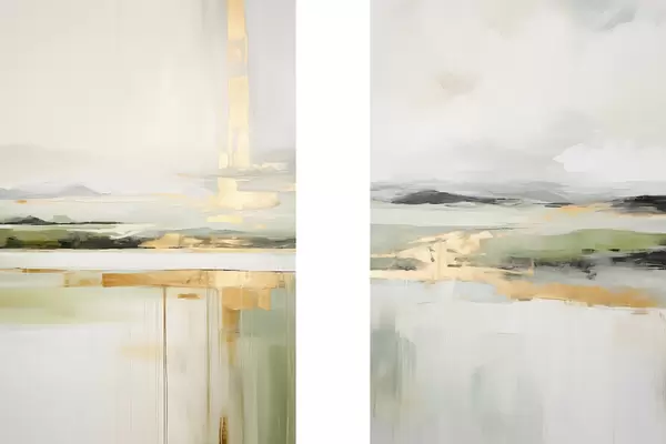 Poster Peisaj abstract cu accente galbene, o compoziție minimalistă de pământ, apă și cer, cu culori discrete d00877