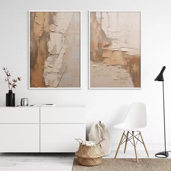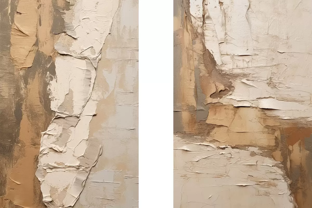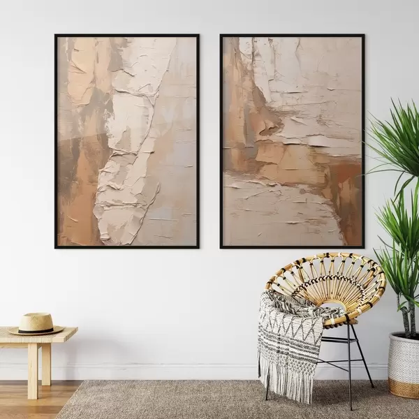 Poster Pictură abstractă cu tușe groase, tonuri de bej și maro, suprafață texturată, paletă de culori neutre Nr d00879