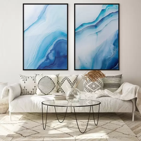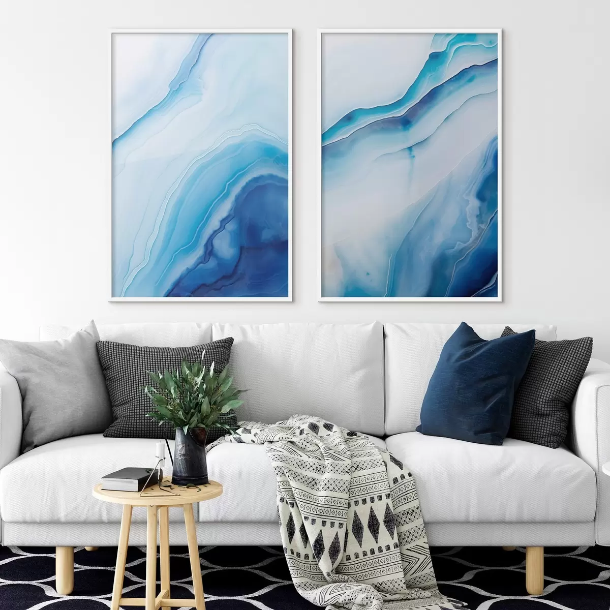 Poster Imprimare abstractă albastră și albă cu agate, linii și gradienturi învolburate, textură netedă, artă modernă, minimalistă Nr d00888