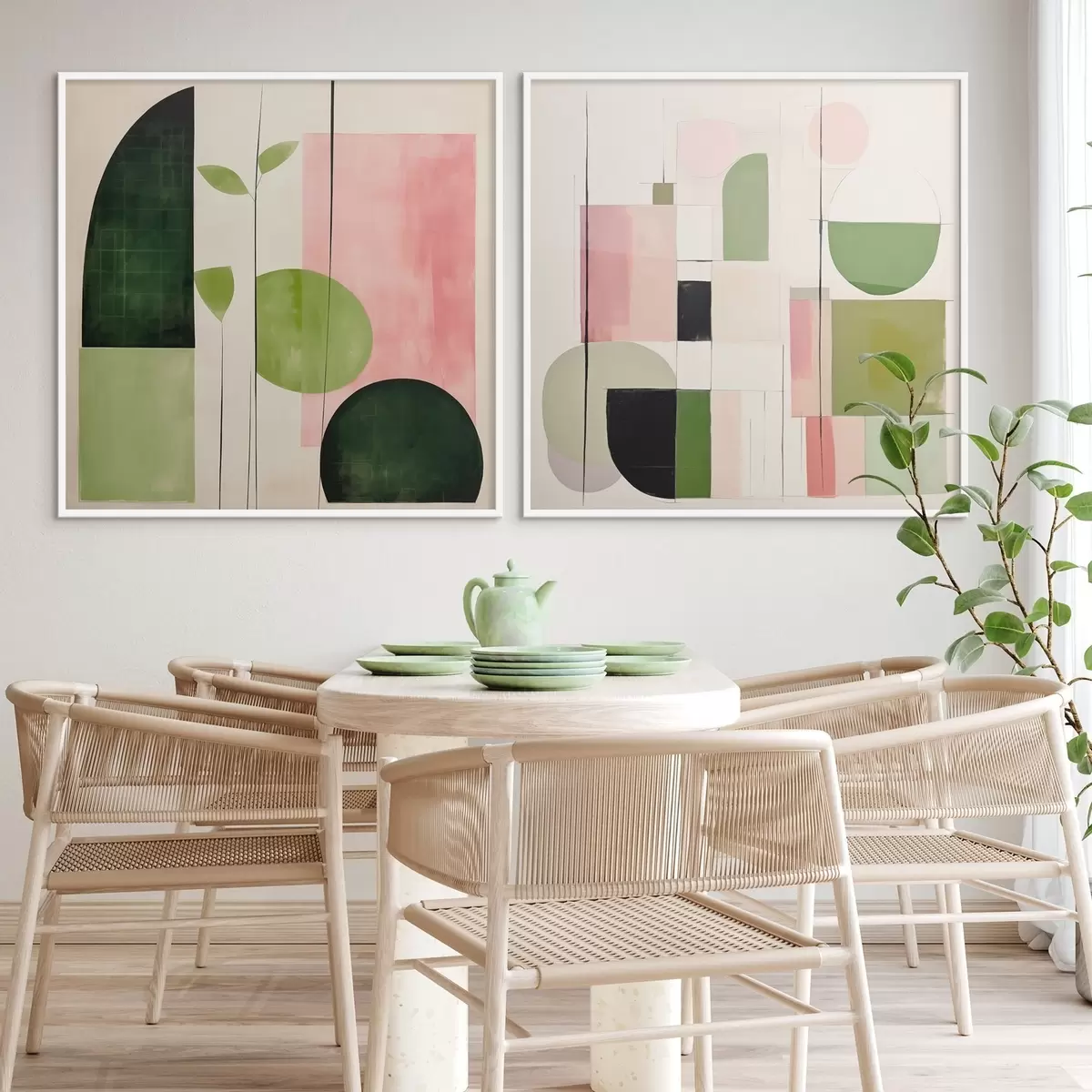 Poster Diptic minimalist cu flori stilizate și geometrie Nr d00894