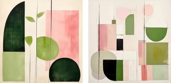 Poster Diptic minimalist cu flori stilizate și geometrie Nr d00894