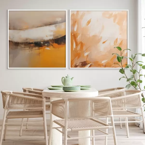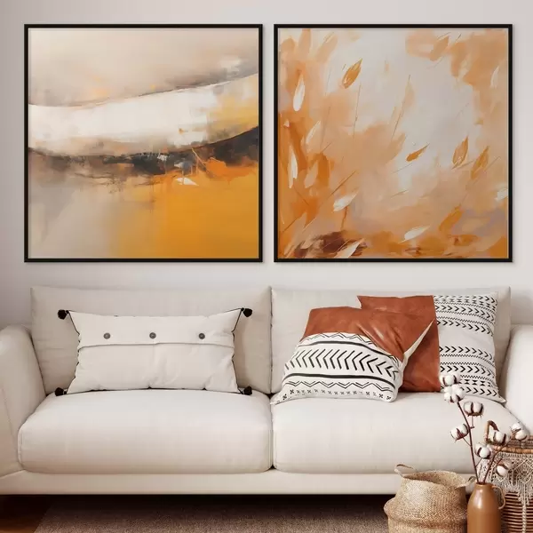 Poster Diptic abstract în stil ulei, în tonuri de galben-portocaliu și negru Nr d00897